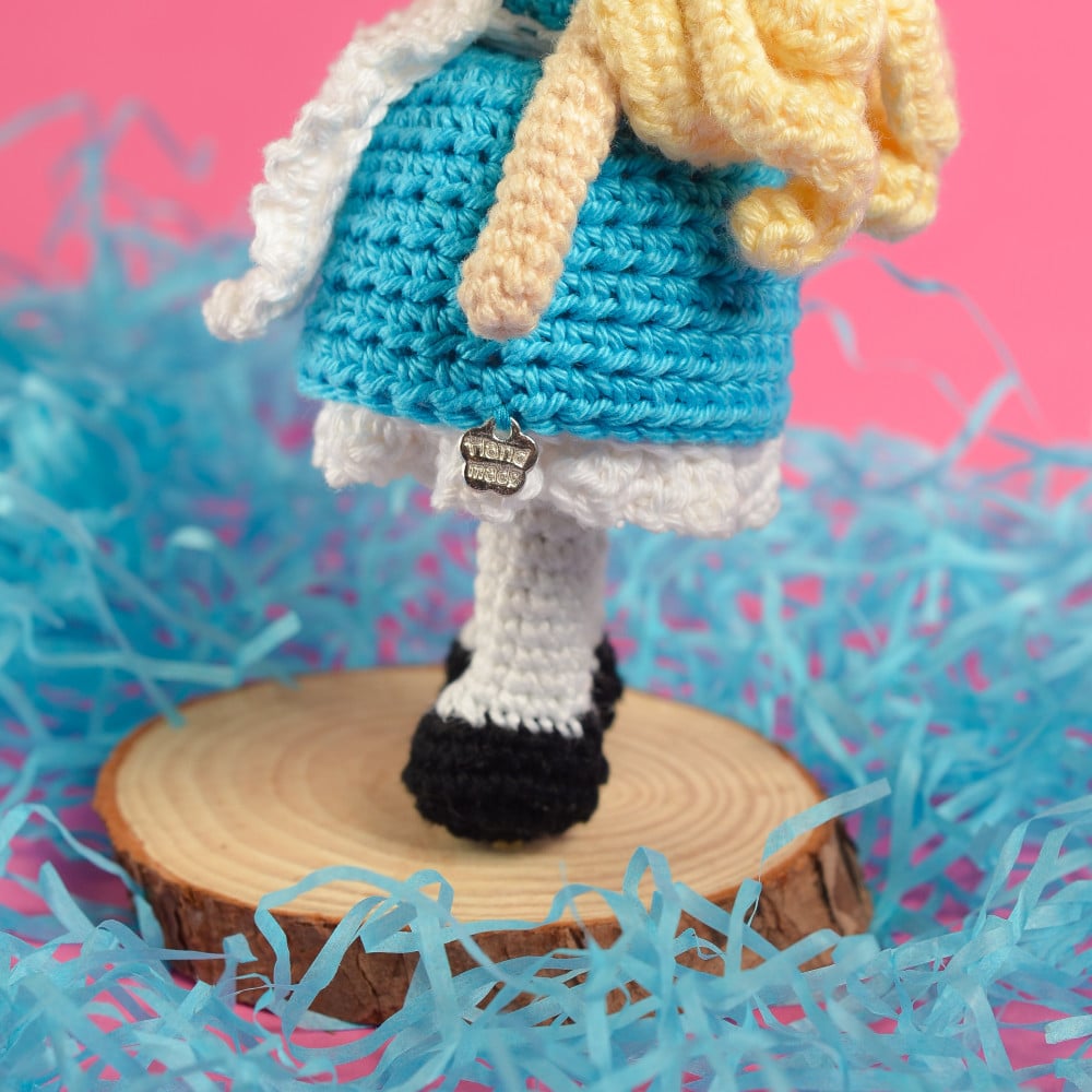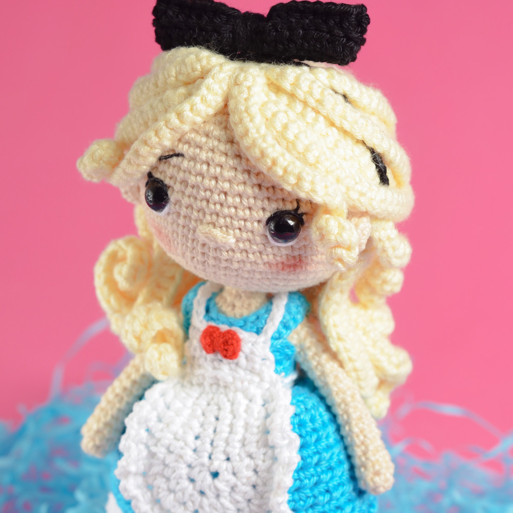 دميه رائعة لأليس في بلاد العجائب مصنوعه يدويا بالكروشية من احد الفنانين
